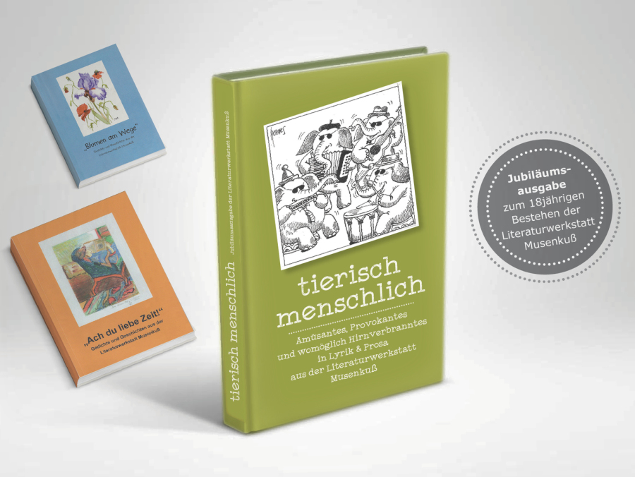 Zum Jubiläum erscheint das neue Werk erstmals als Harddcover-Buch, geschrieben von zehn hier in der Region lebenden Autoren mit vielfältigen Texten: entspannend, nachdenklich, mit Herz und Verstand und natürlich auch zum Schmunzeln. Das Buch enthält außerdem tierisch-humorvolle Illustrationen von Hans Biedermann. Dies alles in eine präsentable Form zu bringen, typografisch zu gestalten und für den Druck vorzubereiten ist derzeit meine Aufgabe.